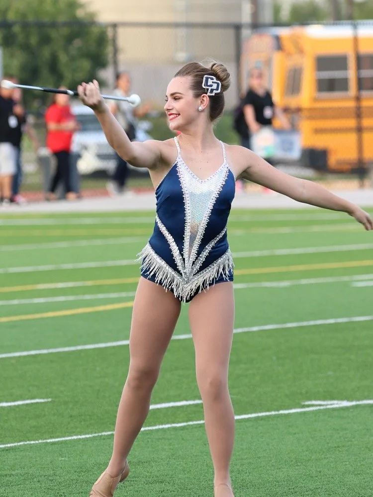 College Park High School Feature Twirler, Emma Newsoroff, Performs With The College Park High School Marching band During PreGame At The MacArthur High School VS College Park High School On September 7th , 2018. The Game Was Played At Woodforest Bank Stadium Located In Shenandoah, Texas.