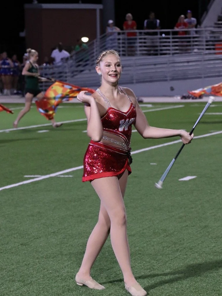 The Woodlands High School Feature Twirler, Kaylynn Lambert, Performs With The Woodlands High School marching band During HalfTime At The Lamar High School VS The Woodlands High School On September 6th, 2018. The Game Was Played At Woodforest Bank Stadium Located In Shenandoah, Texas.
