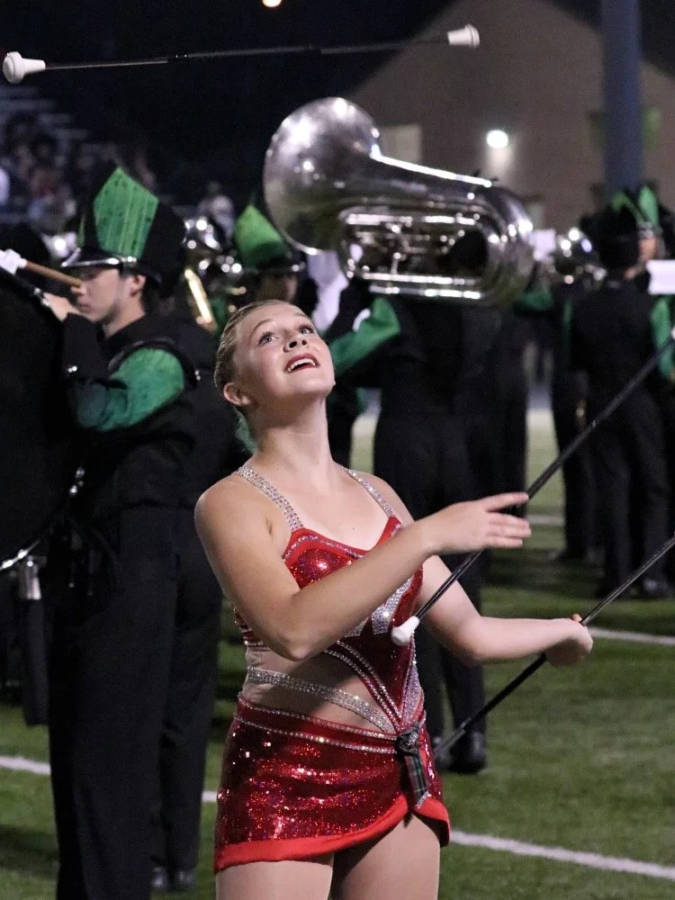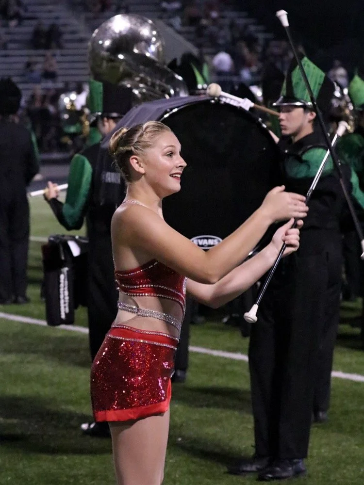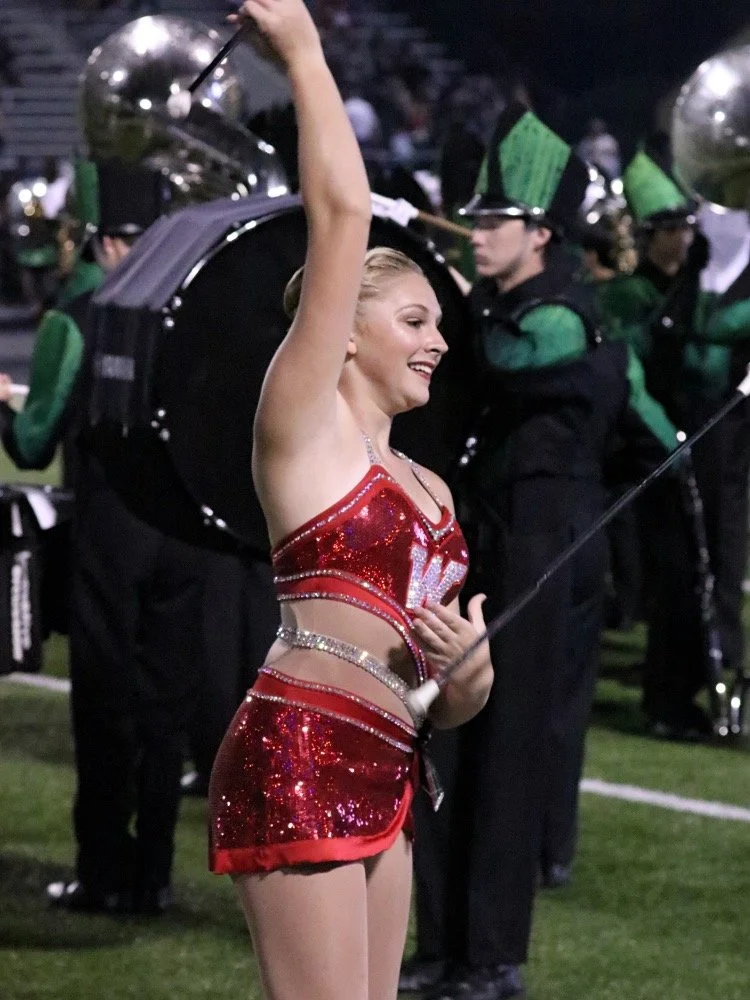 The Woodlands High School Feature Twirler, Kaylynn Lambert, Performs With The Woodlands High School Marching Band During HalfTime At The The Woodlands High School VS Conroe High School On October 19th, 2018. The Game Was Played At Buddy Moorhead Stadium Located In Conroe, Texas.