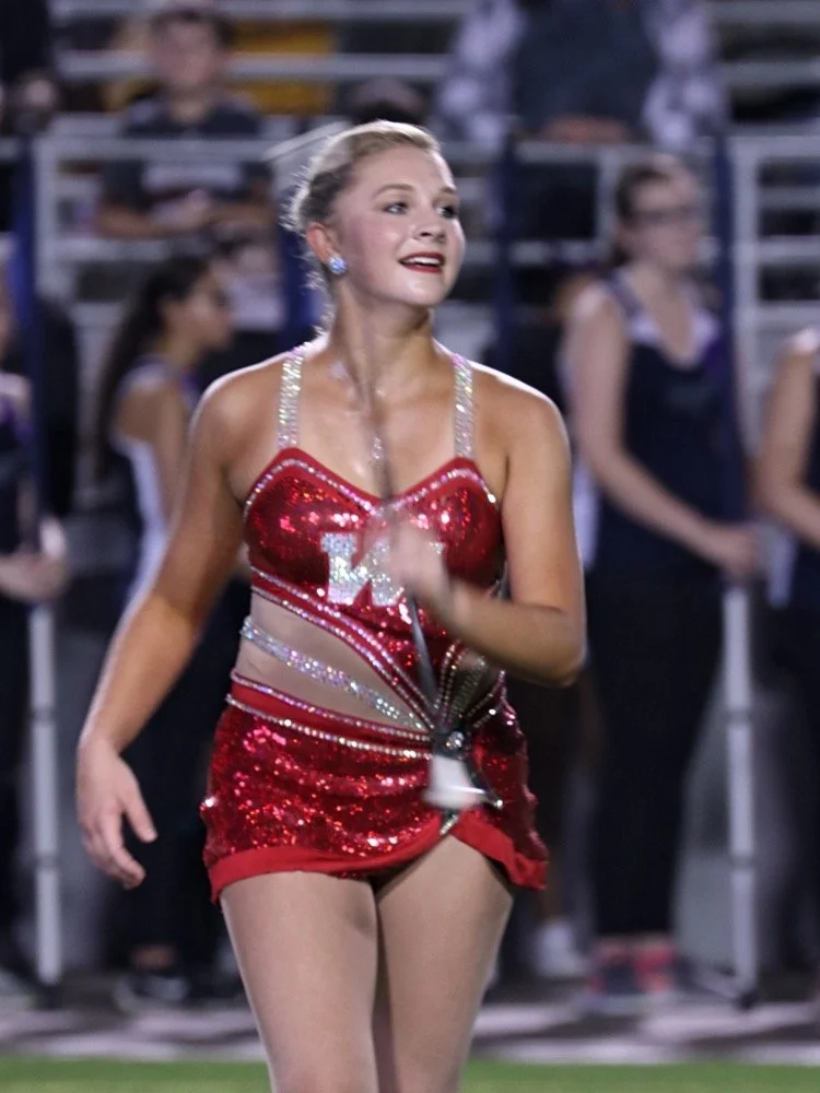 The Woodlands High School Feature Twirler, Kaylynn Lambert, Performs With The Woodlands High School marching band During HalfTime At The Woodlands High School VS College Park High School On September 21st, 2018. The Game Was Played At Woodforest Bank Stadium Located In Shenandoah, Texas.