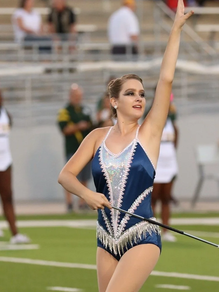 College Park High School Feature Twirler, Madison Frantzen Performs With The College Park High School marching band During PreGame At The Klein Forest High School VS College Park High School On October 5th, 2018. The Game Was Played At Woodforest Bank Stadium Located In Shenandoah, Texas.