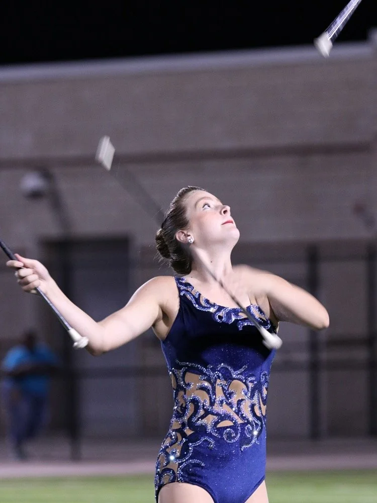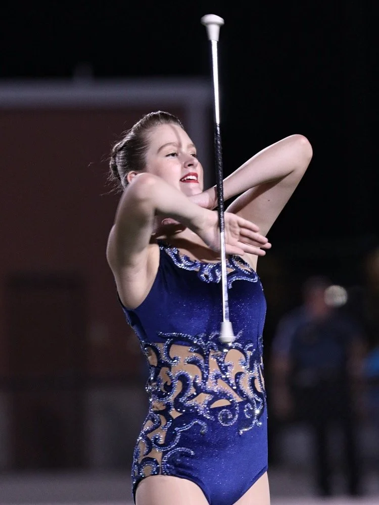 College Park High School Feature Twirler, Madison Frantzen, Performs With The College Park High School marching band During HalfTime At The MacArthur High School VS College Park High School On September 7th, 2018. The Game Was Played At Woodforest Bank Stadium Located In Shenandoah, Texas.