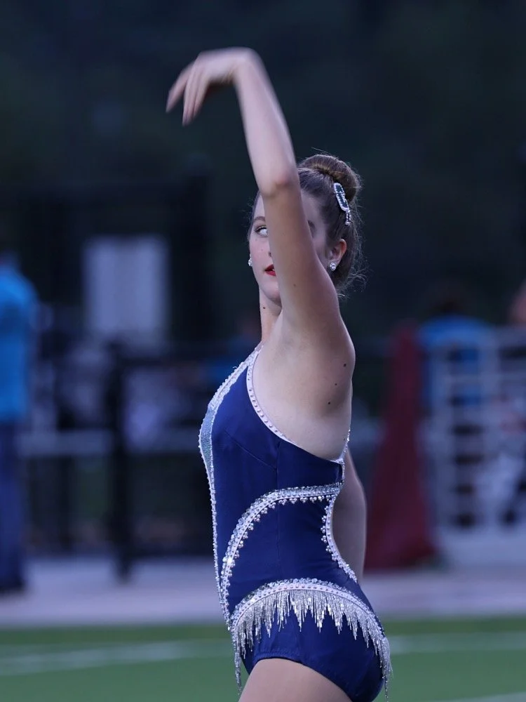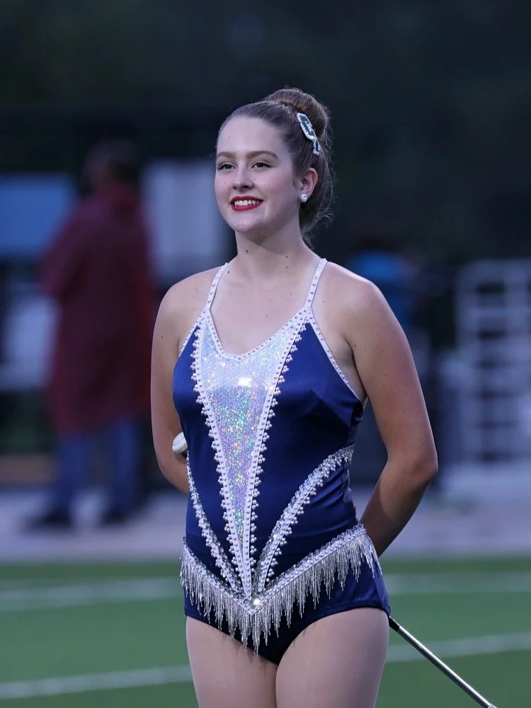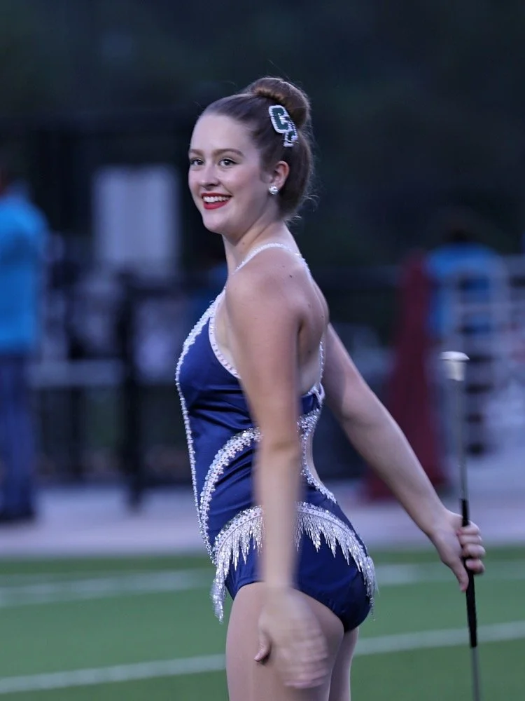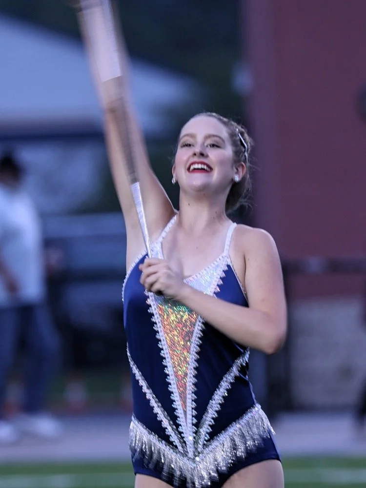 College Park High School Feature Twirler, Madison Frantzen Performs With The College Park High School marching band During PreGame At The Woodlands High School VS College Park High School On September 21st, 2018. The Game Was Played At Woodforest Bank Stadium Located In Shenandoah, Texas.