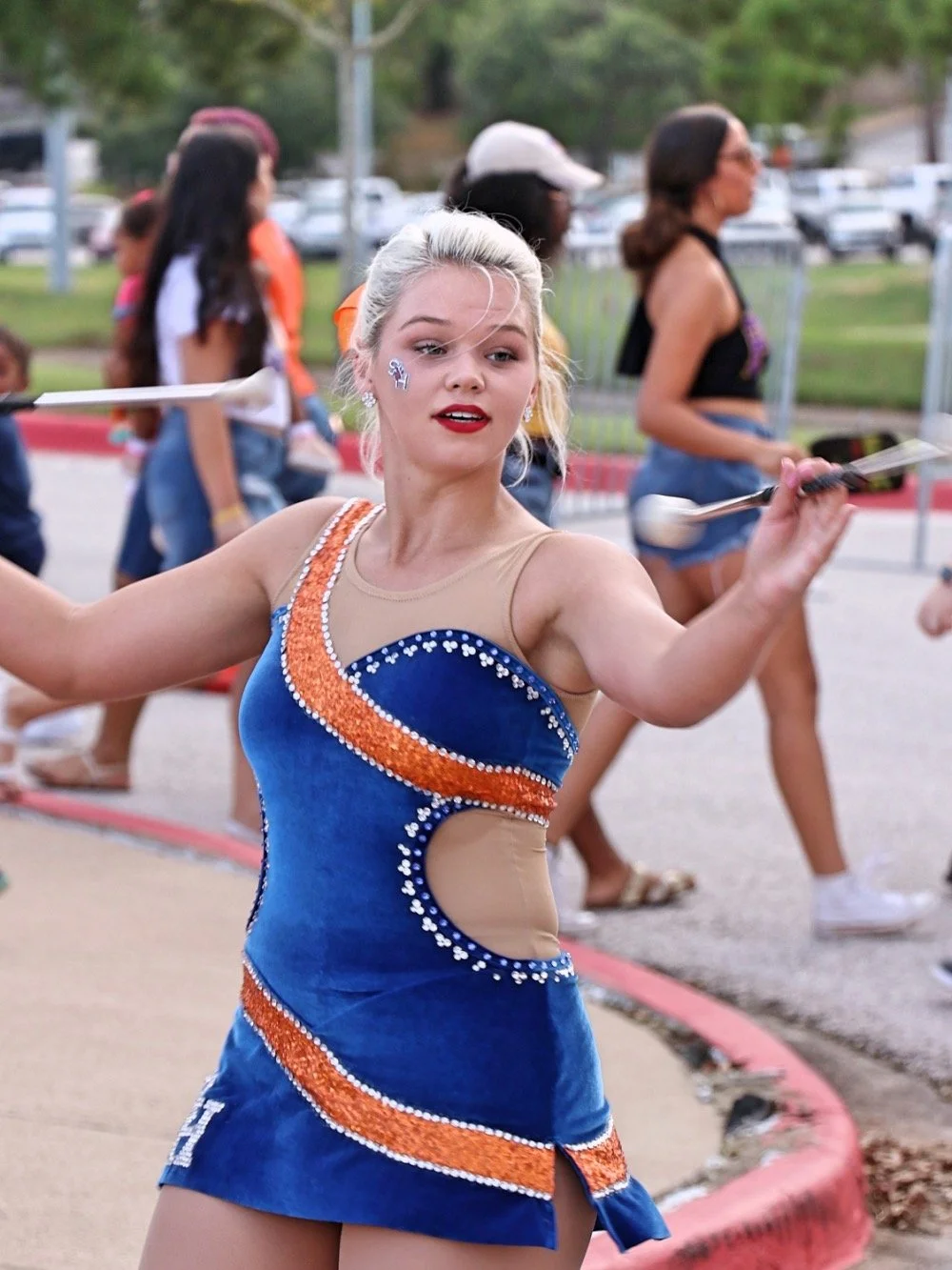 Sam Houston State University Feature Twirler, Racheal Doucette, Performs With The Sam Houston State University Bearkat Marching Band During Pregame At The Prairie View A&M vS Sam Houston State University Football Game On September 8th, 2018. The Game Was Played At Elliott T. Bowers Stadium Located In Huntsville, Texas.