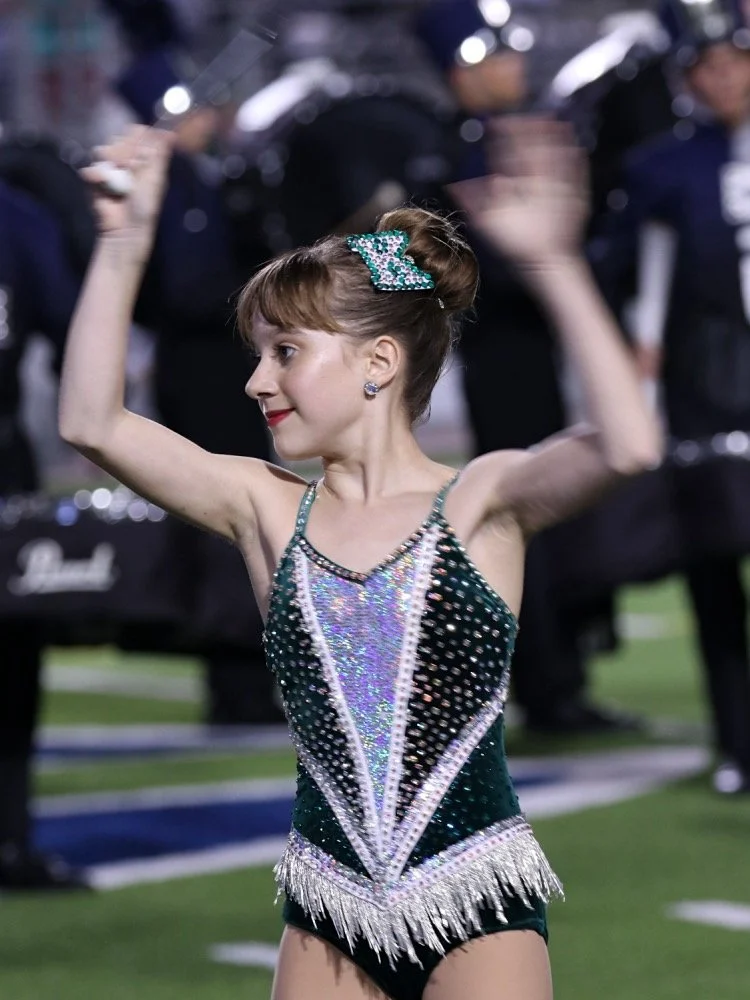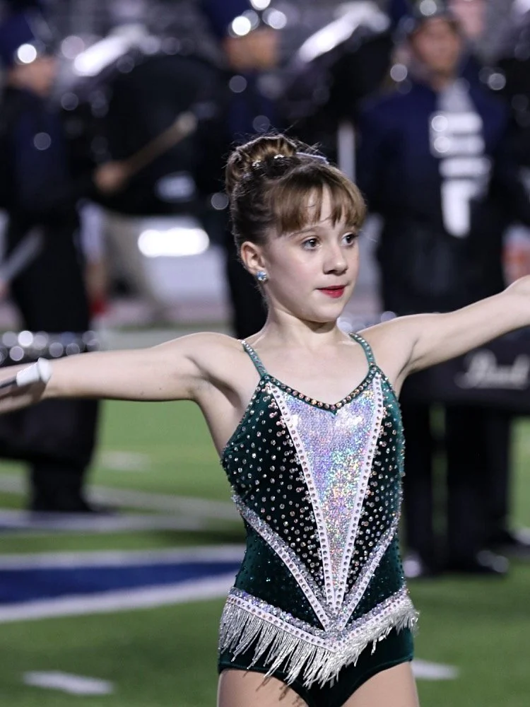 Mickeys Majorettes Feature Twirler, Sophia Dinubilo, Performs With The College Park High School Feature Twirlers And The College Park Marching Band During HalfTime At The Woodlands High School VS College Park High School On September 21st, 2018. The Game Was Played At Woodforest Bank Stadium Located In Shenandoah, Texas.