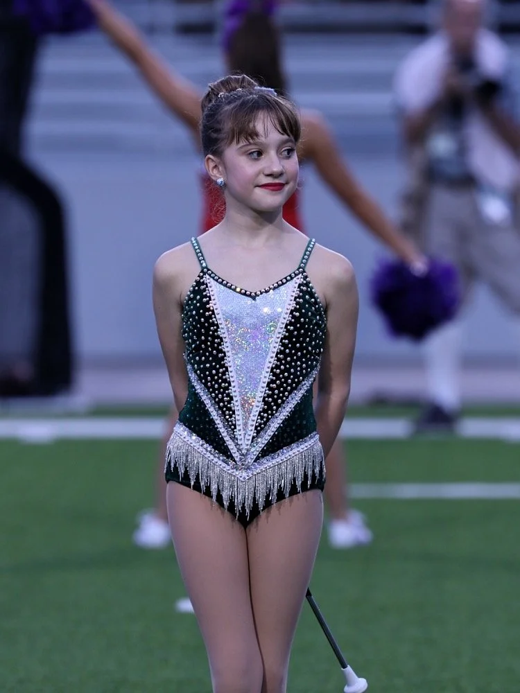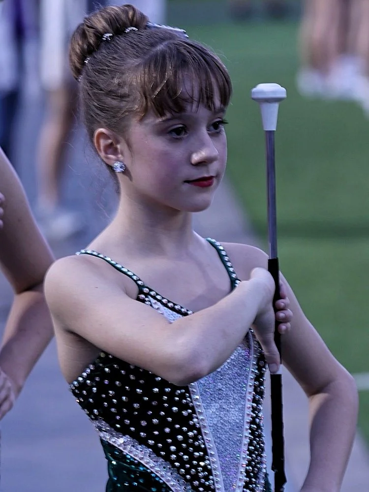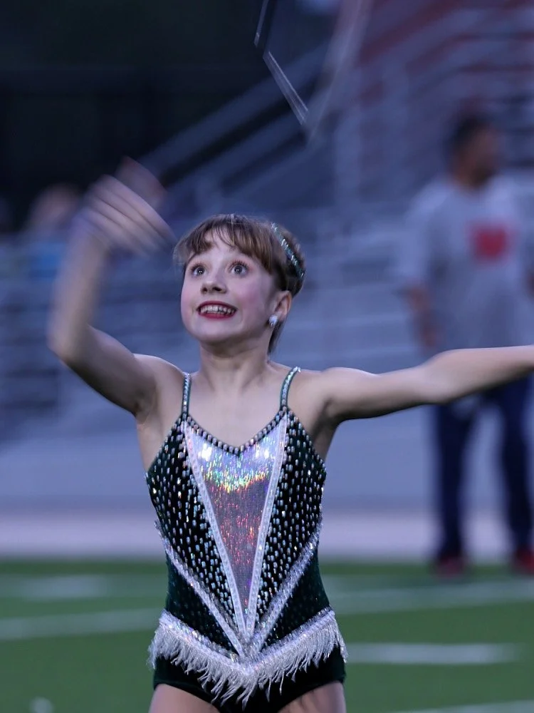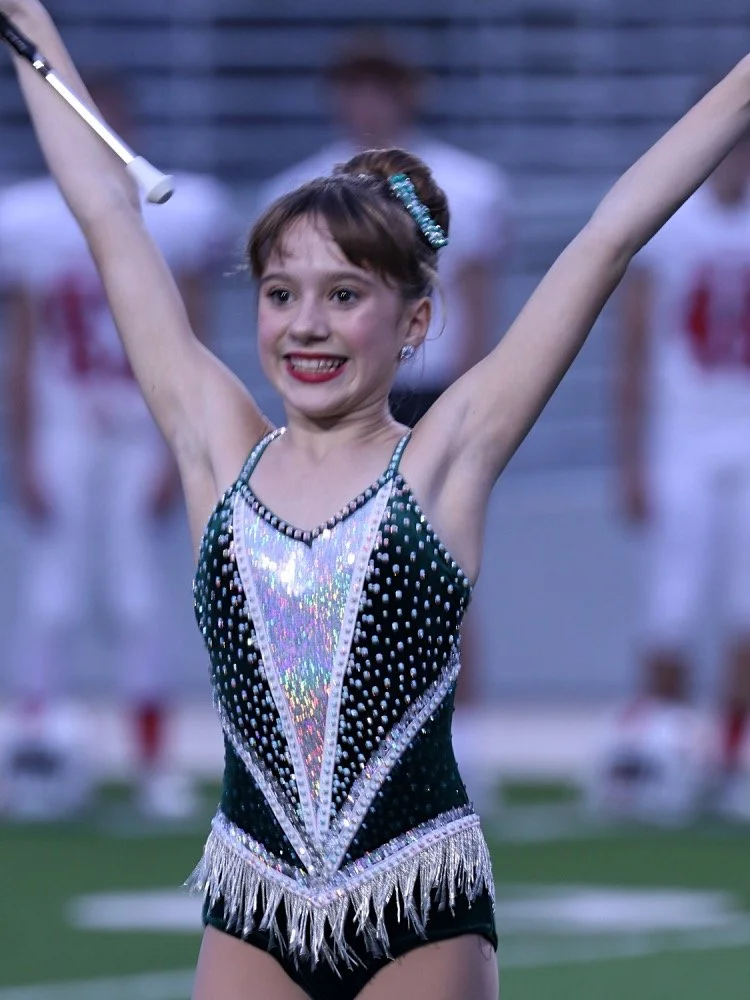 Mickeys Majorettes Feature Twirler, Sophia Dinubilo, Performs With The College Park High School Feature Twirlers and the College Park Marching Band During PreGame At The Woodlands High School VS College Park High School On September 21st, 2018. The Game Was Played At Woodforest Bank Stadium Located In Shenandoah, Texas.
