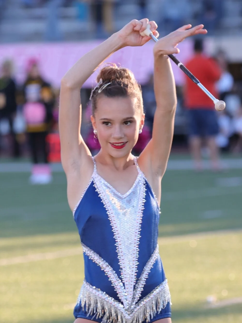 College Park High School Feature Twirler, Sophia Dinubilo, performs during PreGame at the College Park High School versus Klein Oak High School football game at Klein Memorial Stadium on Saturday, October 26, 2019.